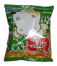 日本人はワサビが好きです。いろいろな料理にあいますからね!!と言うことでわさビーフです。適度につんつんくるワサビの風味があきさせません。標準のポテチサイズ(?!)よりやや小さめで、あれれ一人で食べちゃったという適量です。また、パッケージの裏には「わさび豆知識」なんぞありますのでご一読を。おおっ鼻つーん!!